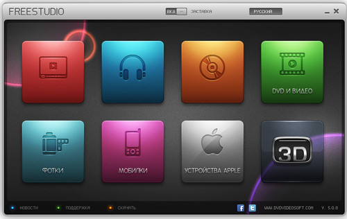 Free Studio - универсальный набор программ для редактирования и конвертирования медиа-файлов, копирования и записи мультимедийных дисков. Новый Free Studio состоит из следующих 8 разделов: YouTube, MP3 и Аудио, CD-DVD-BD, DVD и Видео, Фотографии, Мобилки, Устройства Apple, 3D. Таким образом, новый интерфейс включает в себя все 39 программ, что позволяет быстро найти нужную именно вам. Более того, мы добавили 2 новые программы: Free Video to Sony PlayStation Converter и Free Video to Nintendo Converter.